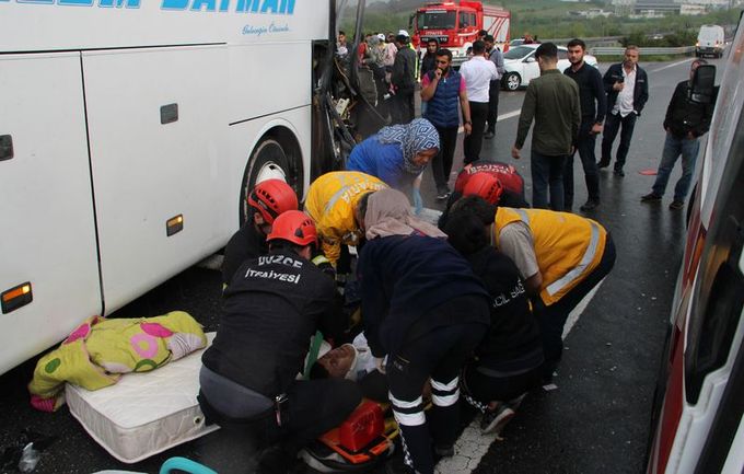 Alınan bilgiye göre, Halil A. idaresindeki 34 FDC 21 yolcu otobüsü, otoyolun Düzce kesimi Ankara istikameti Gümüşova mevkisinde Hasan A. yönetimindeki 63 N 5799 plakalı TIR'la çarpıştı.