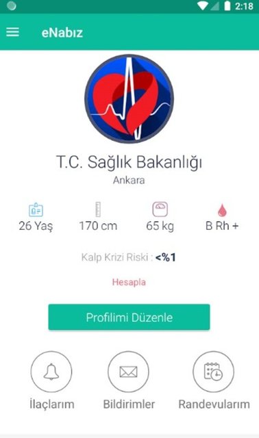 e-Nabız uygulamasına giriş yaptığınızda karşınıza bu şekilde ekran çıkacaktır.
