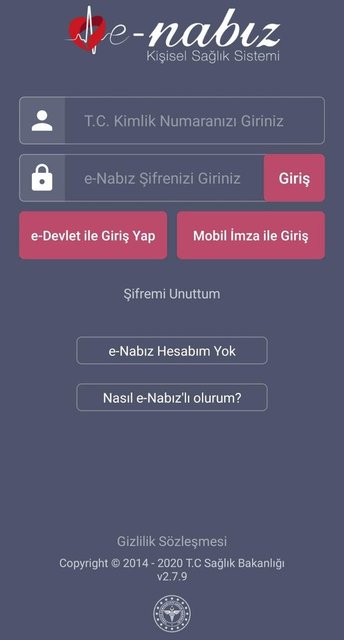 Uygulamayı yükledikten sonra e-Nabız şifrenizle ya da E-devlet giriş ekranı ile giriş yapabilirsiniz.