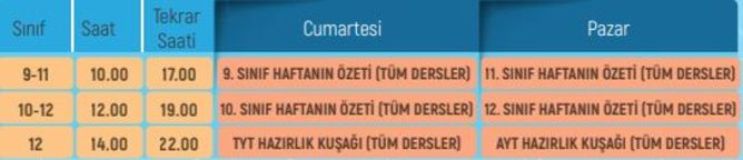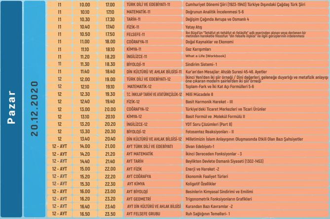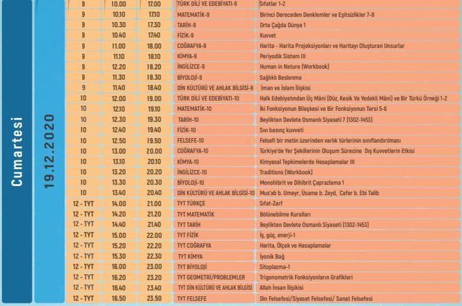 EBA TV LİSE 19-20 ARALIK DERS PROGRAMI
