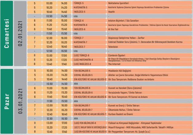 EBA TV ORTAOKUL 2-3 OCAK DERS PROGRAMI