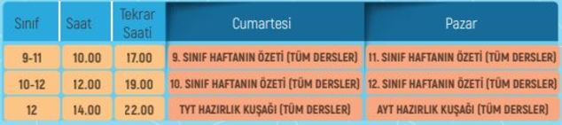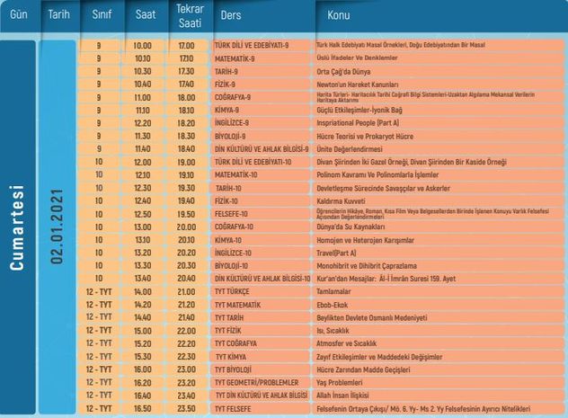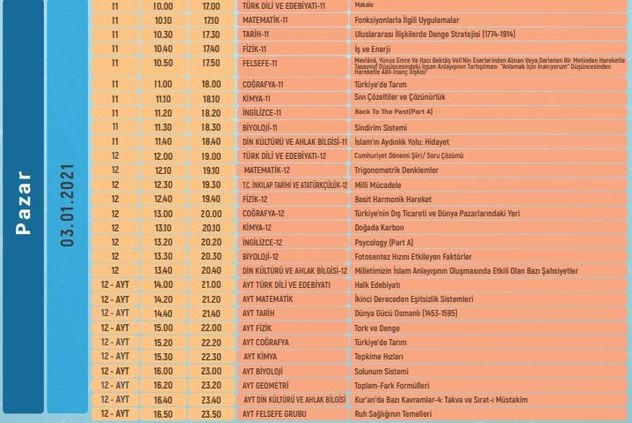 TRT EBA TV LİSE 2-3 OCAK YAYIN AKIŞI