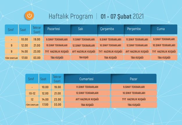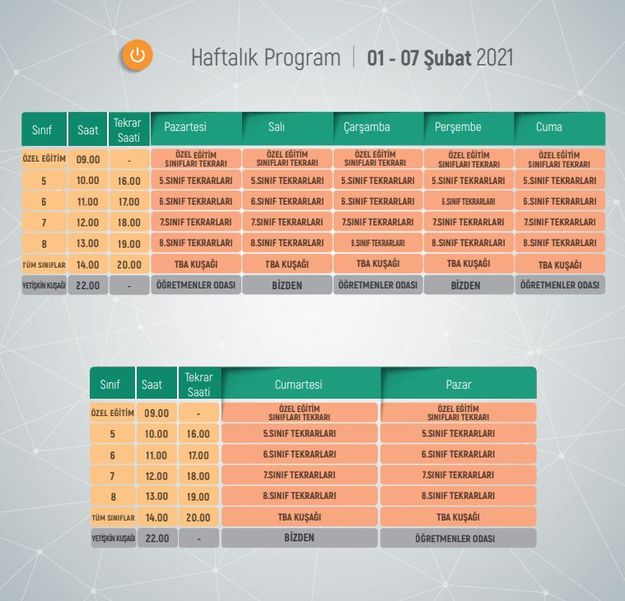 1-7 ŞUBAT 2021 EBA TV İLKOKUL YAYIN AKIŞI İÇİN TIKLAYINIZTRT EBA TV 1-7 ŞUBAT ORTAOKUL DERS PROGRAMI