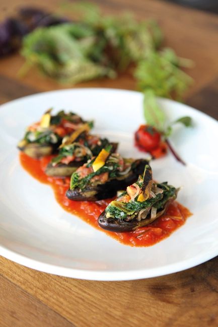 Közlenen mini patlıcanların içini hazırladığınız iç harçla doldurun. Sunum esnasında isteğe göre domates sosla servis edebilirsiniz.