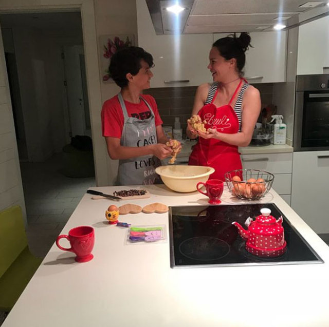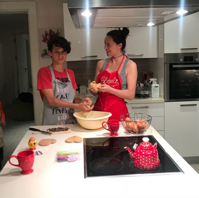 Ebru Şallı oğlu Beren ile kurabiye yaparken çekildikleri fotoğrafları sosyal medya hesabından paylaştı