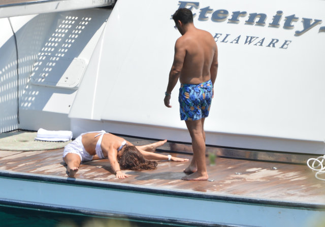 Baş başa tatile çıkan ikili, önceki gün Güvercinlik açıklarında bulunan İkizler Adası'nda demirli teknelerinde deniz sefası yaptı.