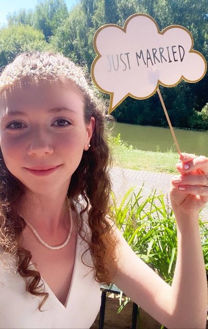 Müjdeli haberi sosyal medya hesabından yaptığı paylaşımlarla duyuran 24 yaşındaki oyuncu, "Biz bugün evlendik, düğünümüzü seneye sevdiklerimizle kutlayacağız." mesajını paylaştı.