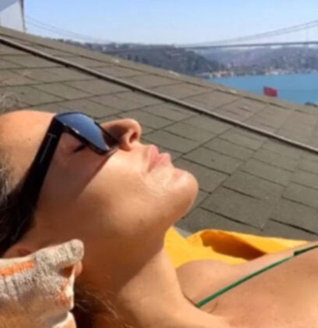 Taşpınar, karantinanın ilk günlerinde plajlara inemeyince, Rumeli Hisarı'ndaki evinin çatısında güneşlenmişti.
