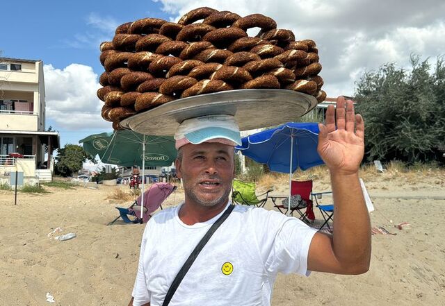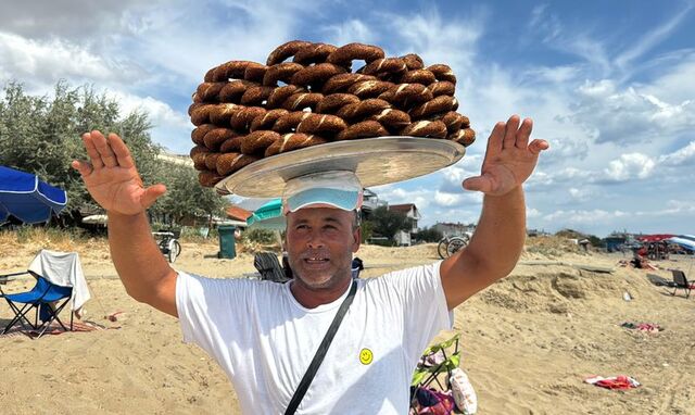 Serkan Demirdöven, 24 yıldır Saros Körfezi'ndeki sahillerde simit sattığını anlattı.