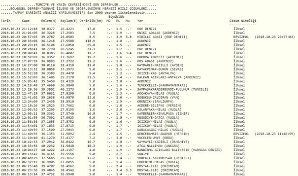 Ege Denizi akşam saatlerinde depremle sarsıldı. Merkez üssü Sakız Adası olan depremin büyüklüğü Kandilli Rasathanesi tarafından 3,9 olarak tespit edildi. İşte Kandilli Rasathanesi tarafından tespit edilen son depremler...