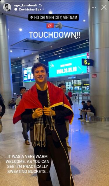 Öte yandan yarışma için Vietna'a giden Karabenli, yaptığı bir diğer paylaşımda, "Çok sıcak bir karşılama oldu. Gördüğünüz gibi, resmen ter döküyorum" ifadelerini kullanarak, yaşadığı sıcak havayı esprili bir dille aktardı.