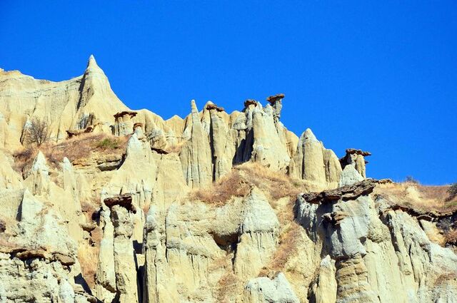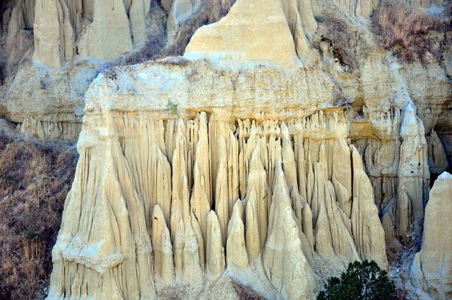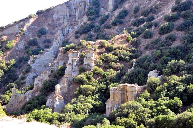 Burası, aslında 14 milyon yıl önce bir gölün tabanıydı. Bu gölün tabanına, etrafından akarsularla taşınan alüvyal çökeltilerin oluşturduğu bu katmanların zaman içinde gölün direne olup, vadideki suyun boşalmasının ardından kalan kalıntıların rüzgar, suyla aşınmasıyla oluşuyor. Aşınma mekanizması, Nevşehir'deki peribacalarıyla aynı. Yukarıda bir şapka dediğimiz yer, gövdesine göre daha sert bir yapı. Altında da suyun ve rüzgarın daha kolay aşındırdığı, gövde dediğimiz yapısıyla gördüğümüz şekilleri oluşturuyor" dedi.