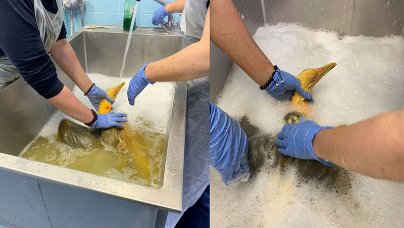 Yıkandıktan sonra beyaz renge dönen Vinny doğal ortamına dönmeye hazır hale getirildi.