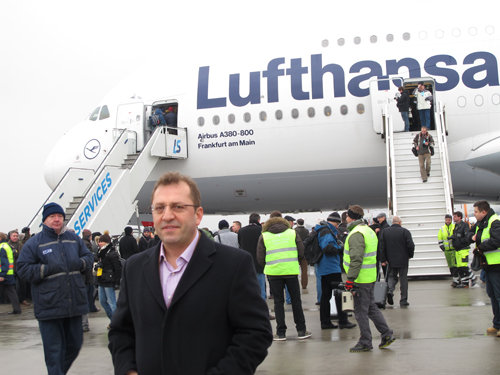 Alman Lufthansa Havayolları’nın filosuna katılan beşinci Airbus A380 olan 'Frankfurt' ismini aşıyan yolcu uçağının tanıtım turuna Varşova-İstanbul ayağına ben de katıldım.