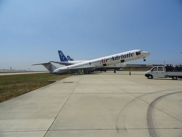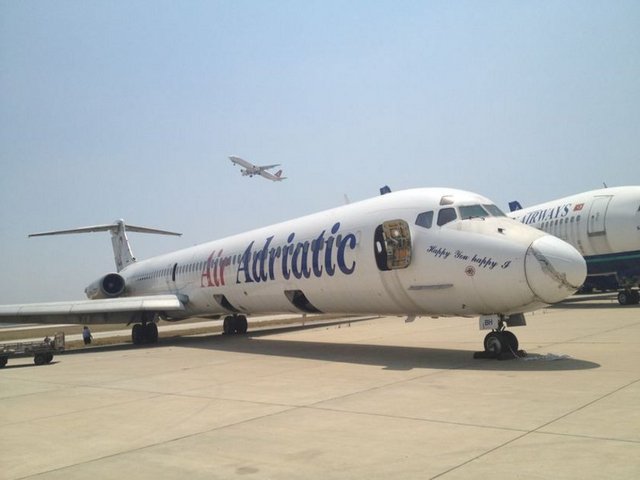 Bir zamanlar Adriyatik Havayolları renk ve logosuyla uçan MD-82 tipi uçak, uçuş ömrünü tamamlayarak hurdaya çıktı. Atatürk Havalimanı'nda özel uçakların kullandığı genel havacılık apronunda hurda uçakların bulunduğu bölgede park halinde olan uçakta koltuk sökümü yapıldı.