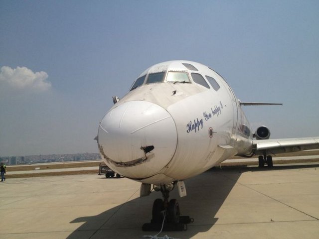 Uçuştan düşen ve satışa çıkarılan uçağı satın alan kişi, uçağın işe yarayan parçalarını tek tek sökmeye başladı. Uçağın kabininde ön bölümdeki koltuklar sökülerek kuyruk bölümünden çıkarılmak üzere arka bölüme yığıldı. Bu sırada hafifleyen uçağın burun kısmı bir anda havalanarak şaha kalktı. Uçağın kuyruğu yere değerken, burun kısmı havaya kalktı. Olay yerine gelen Devlet Hava Meydanları İşletmesi (DHMİ) ekiplerinin talimatıyla uçak arka bölümünden forkliftle kaldırıldı ve iplerin yardımıyla içeriye kum torbaları da konularak normal pozisyonuna döndürüldü. DHMİ yetkilileri uçakta hatalı boşaltma işlemi yapıldığını ve hatalı işlem yapan firmanın uyarıldığını söylediler. Uçağın işe yarayan motor, koltuk gibi parçaları söküldükten sonra gövdesi hurda olarak TASİŞ'e (Tasfiye Hizmetleri Genel Müdürlüğü) devredilecek.