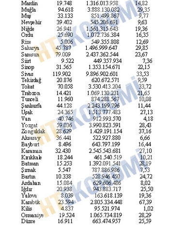 Öte yandan Milli Emlak Genel Müdürlüğünün 2010 Yılı Faaliyet Raporunda, devletin en fazla taşınmazının olduğu iller Konya, Sivas, Mersin, Balıkesir ve Antalya olarak sıralanıyor.