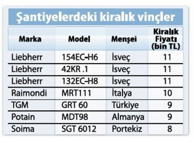 · Hızlı çalışan, yüksek binaların inşaatına uygun kule vinçlerin yanı sıra villa ve dar alanlarda da çalışabilen vinçler sektöre sunuluyor. İnşaat süresi yarı yarıya azalıyor.