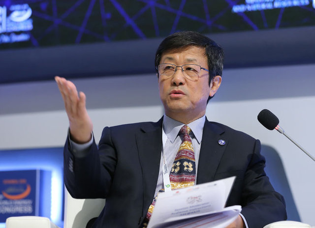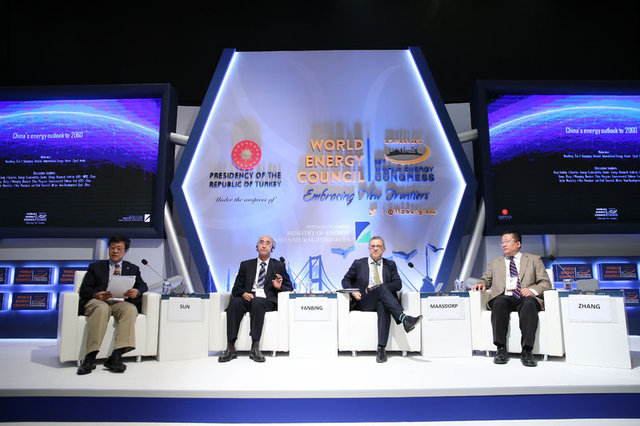 23. Dünya Enerji Kongresi'nde moderatörlüğünü Uluslararası Enerji Forumu Genel Sekreteri Dr Sun Xiansheng'in (solda) yaptığı "2060-Çin Enerjisine Genel Bakış" konulu oturuma, Çin Yeni Kalkınma Bankası Başkan Yardımcısı ve Finans Sorumlusu Leslie Maasdorp (sağ 2), Enerji Araştırma Enstitüsü, Enerji Sürdürülebilirlik Merkezi Yönetmeni Kang Yanbing (sol 2) ve Çevre Savunma Fonu Çin Programı Genel Müdürü Jianyu Zhang (sağda) konuşmacı olarak katıldı.