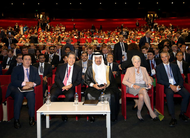 Dünya Enerji Konseyi Başkanı Maria Jose Nadeau (sağ 2), Suudi Arabistan Enerji, Endüstri ve Doğal Kaynaklar Bakanı Khalid Al-Falih (sol 3), Dünya Enerji Konseyi Yönetim Kurulu Başkanı Younghoon David Kim (sol 2) katıldı.