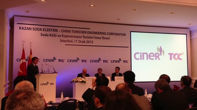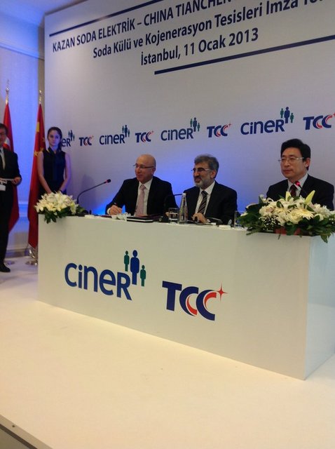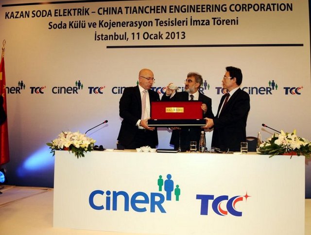 Ciner Grubu bünyesindeki Kazan Soda Elektrik ile Çinli Tianchen Corporation (TCC) Ankara Kazan'da yapılması planalanan soda külü ve kojenerasyon tesisi için İstanbul'da imza attı. Toplam yatırım bedeli 1 milyar 350 milyon dolara ulaşacak tesis için Cuma günü düzenlenen imza törenine Enerji Bakanı Taner Yıldız da katıldı. Törende anlaşmayı Ciner Grubu Yönetim Kurulu Başkanı Turgay Ciner ile Tianchen Corporation Yönetim Kurulu Başkanı Wang Zhiyuan imzaladı.