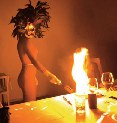 Sublimotion, iki kişilik maliyeti 3.377 dolar olan mönüyü 12 kişilik gruplara çeşitli dönemler için belirlediği temalar halinde sunuyor. Fotoğrafta görüldüğü gibi yemeğinizi çeşitli şovlar eşliğinde yiyorsunuz. Mönüde ise hap şeklinde sorbe, nitrojende dondurulmuş zeytin yağı, istridye kabuğu içinde sunulan balıklar, karides yer alıyor. Tatlı servisi sırasında masa neon ışıklar ve görsel efektler sayesinde bir DJ kabini görüntüsü alıyor. 12 kişilik gruba bir hostes ve 25 kişilik servis ekibi hizmet veriyor. Restoranın şefi Paco Roncero’nun iki Michelin yıldızı buluyor.