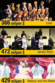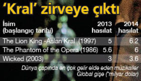 İlk büyük patlamasını 1940’larda yapan müzikaller, son yıllarda daha küresel hale geldi. En büyük 2 pazar ise Broadway müzikalleriyle ünlü ABD ve Londra’daki müzikalleri dünya çapında şöhrete kavuşan İngiltere. The Phantom of the Opera, ilk gösterimini 1986’da Londra’da gerçekleştirdi ve uzun yıllar boyunca dünyanın en fazla hasılat elde eden müzikali unvanını korudu. Ancak, 1997’de gösterime giren The Lion King (Aslan Kral), 2014’ün son çeyreğinde toplam hasılatını 6.2 milyar dolara ulaştırarak 6 milyar dolarda kalan The Phantom of the Opera’yı tahtından indirmeyi başardı.