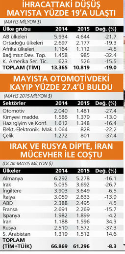 Sorunlu pazarlar ve paritenin etkisi mayıs ayı ihracat rakamlarında da kendini gösterdi.