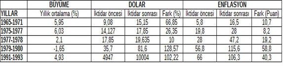 Peki Demirel'in iktidarda kaldığı dönemlerde ekonomi nasıl performans gösterdi? Demirel'in iktidarda kaldığı dönemlere bakıldığında Türkiye ekonomisinin 1980 darbesi haricinde büyümeye devam ettiği görülüyor. Ancak enflasyon ve dolar kurunun performansı büyüme kadar başarılı değil...