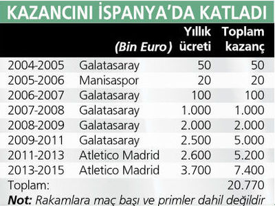 2004’te profesyonel olan Arda Turan, aradan geçen 10 yıllık sürede futboldan adeta bir servet kazandı. Her ne kadar kazandığı rakamın tamamını bilmek mümkün olmasa da bugüne kadar açıklanan rakamlar baz alındığında Arda futboldan, 20.7 milyon Euro’su garanti para olmak üzere, en az 26 milyon Euro kazandı. Hiç kuşkusuz bu rakama özel primler ve bonuslar dahil değil. Galatasaray’da oynadığı dönemde çok yüksek ücret alamayan Arda, servetinin önemli kısmını Atletico Madrid’de elde etti. İspanyol kulüpten 4 yılda toplam 12.6 milyon Euro alan Arda, toplam 5.2 milyon Euro civarı da prim elde etti. Bunun yanı sıra yıldız futbolcu, reklam filmlerinden de hatırı sayılır bir servet kazandı. Arda’nın reklamlardan aldığı ücret açıklanmasa da ortalama reklam başına 700 bin Euro gibi bir kazanç elde ettiği belirtiliyor. Ancak Barcelona’ya imza sonrası bu rakamın da katlanacağı tahmin ediliyor.