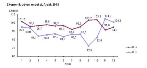 Türkiye İstatistik Kurumu (TÜİK) Aralık 2015 ayı Ekonomik Güven Endeksi verilerini yayımladı.
