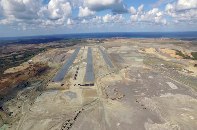 Sabah'ın haberine göre, Havalimanının inşaatını gerçekleştirmek ve 25 yıl boyunca işletmesini yapmak üzere kurulan İGA, sosyal medya hesaplarından birinci etabı 26 Şubat 2018 tarihinde hizmete girecek havalimanında inşaatı devam eden 1 numaralı pisttin havadan çekilen son görüntülerini paylaştı.