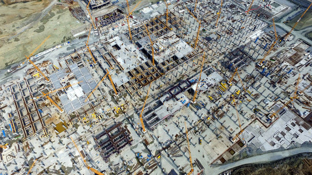 Dev şantiyede ayrıca 252 Ekskavatör, 60 kule vinç, 57 greyder, 124 silindir, 101 dozer, 60 eklemli kamyon, 57 tekerlekli yükleyici, 23 mobil vinç, 70 beton mikser ve 18 adet beton pompası başta olmak üzere toplam 3 bin 22 inşaat makinesi çalıştığı belirtildi.