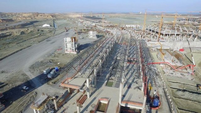 İHA'nın haberine göre, havalimanı inşaatında önemli bir kısım olan ana terminal binası ve pistlerin büyük oranda bittiği çekilen görüntülerde ortaya çıktı.