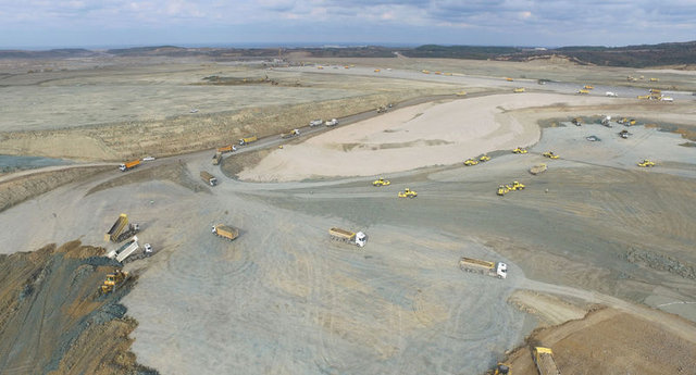3. havalimanının şantiyesinde şu anda 2 bin 200 kamyon günde yaklaşık 1 milyon metreküp toprağı kazı yapılan alanlardan dolgu yapılan alanlara doğru taşıyor.