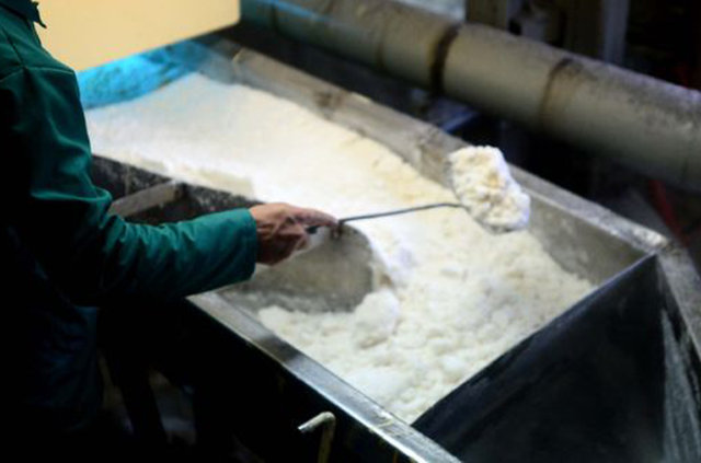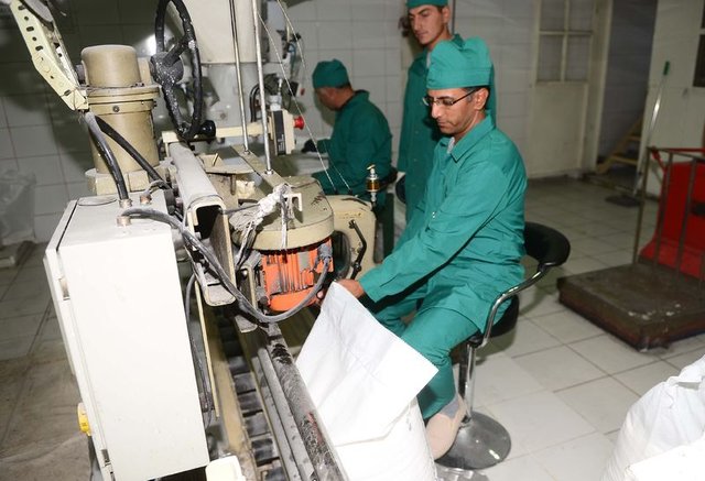 Kristalleşen şeker daha sonra üretim bandından çuvallama işleminin yapıldığı bölgeye ulaşıyor.
