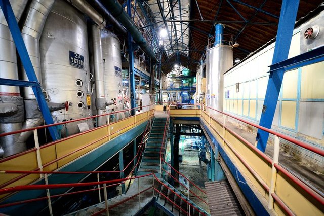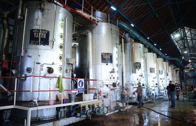 Şeker pancarının içindeki şekerin sıcak su yardımıyla alınmasını sağlayan dev kazanlarda 75 santigrat dereceye ayarlı sıcaklıkta tutulan pancar parçalarındaki şeker suya karışıyor.