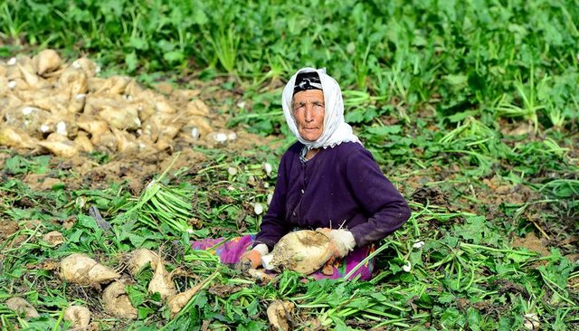 Tek tek topraktan çıkartılan pancarın sapları elle kesildikten sonra istifleniyor, römorklara doldurulup toplama merkezine oradan da fabrikaya taşınıyor.