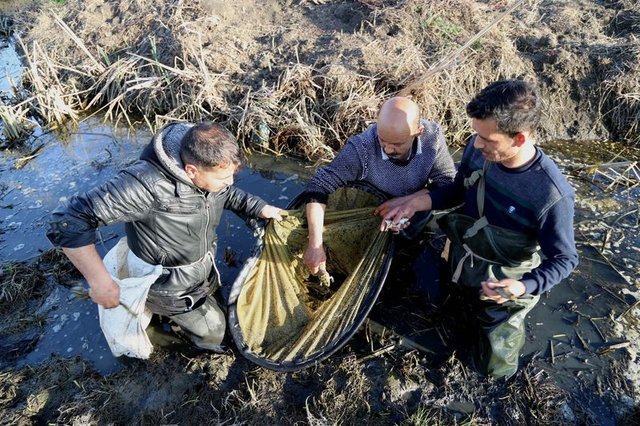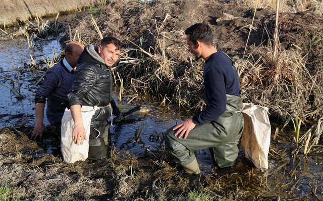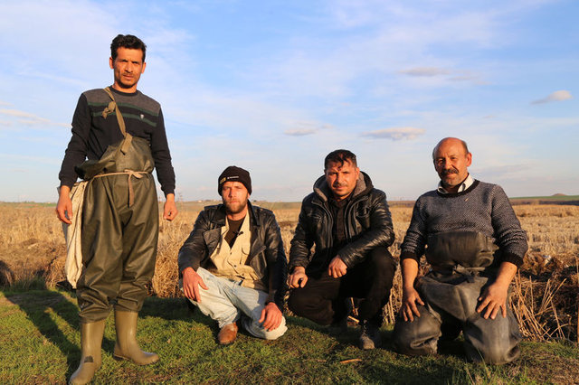 Mahallelerindeki kahvehanede sabahın erken saatinde toplanıp kurbağa toplayacakları rotayı belirleyen kurbağa avcıları, daha sonra gruplara ayrılarak ellerindeki kasık çizme ve sini büyüklüğündeki kurbağayakalayacakları kepçeyle yola koyuluyor.