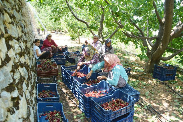 Bu tarlalardan 300 ton kiraz üretimi hedefleniyor. Kiraz ilk çıktığı zaman turfanda fiyatı 12 liradan gidiyordu. Şu anda kilogramı 6-8 lira arasında değişiyor.