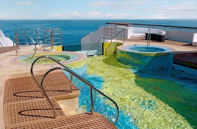 Süper lüks yatta 30'u hizmet için 20'si koruma 50 personel görev yapıyor. Su sporları ve dalış merkezi bulunan yatın üzerinde birisi kapalı birisi açık iki yüzme havuzu var.