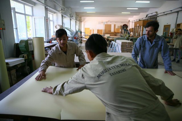 Anlaşmanın ardından öğrendiklerini uygulama ve bu yolla da para kazanma imkanı bulan öğrenciler, sıradan masaya, ders tahtasından, okul idarecilerinin mobilya takımına, sehpadan kıyafet askılığına kadar 28 çeşit eşya üretimi gerçekleştiriyor.