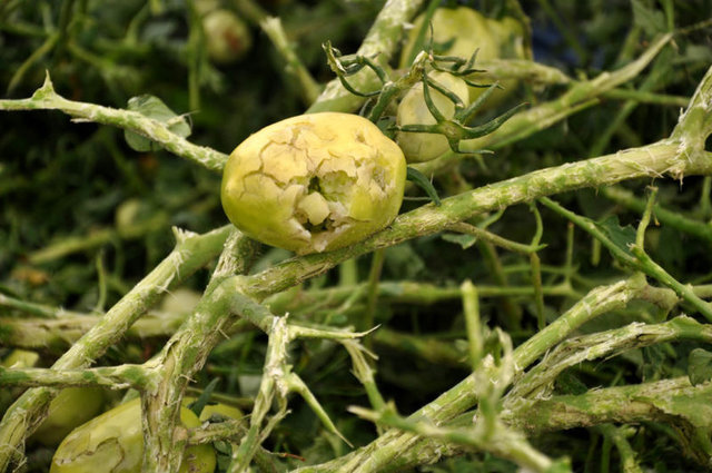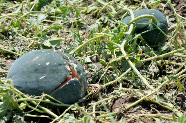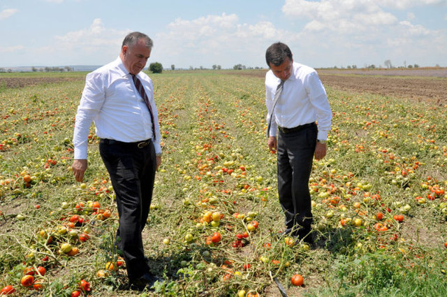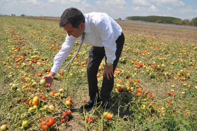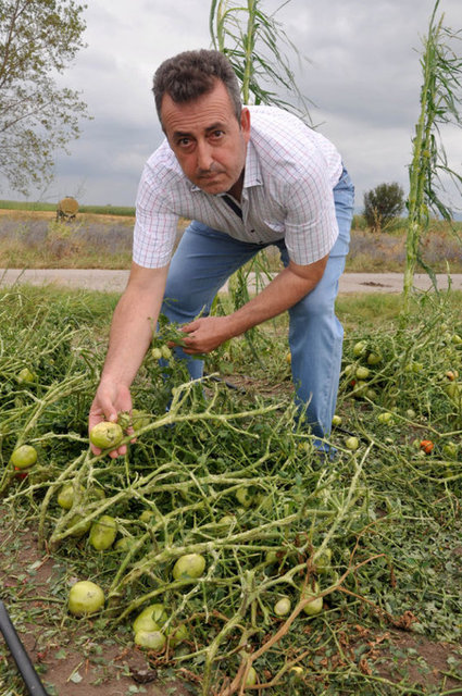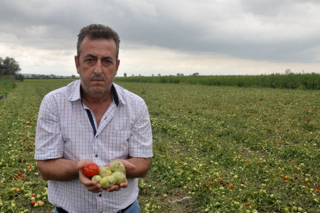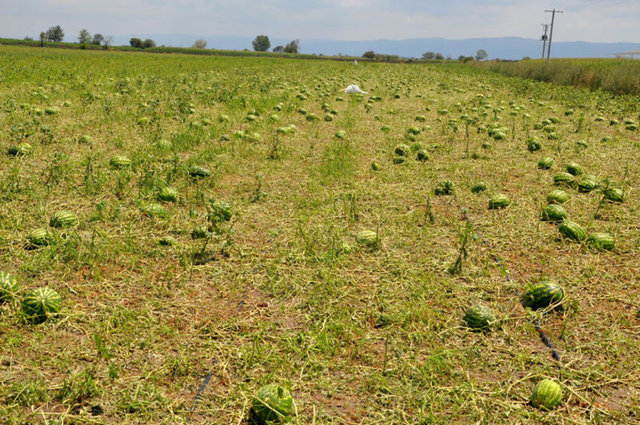 Bursa'nın Mustafakemalpaşa ve Karacabey ilçelerinde bulunan 10 köyde 80 bin dönüm arazide 400 bin ton karpuz, kavun, domates ve biber, ceviz büyüklüğünde yağan dolu sebebiyle paramparça oldu