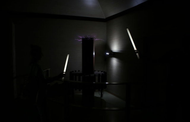 Aynı yerde, ABD'deyken Kolorado Springs'te kurduğu ve o günlerde çok konuşulan kablosuz güç üzerine gerçekleştirdiği çalışmalarını yaptığı deney istasyonunun bir kopyası da yer alıyor.