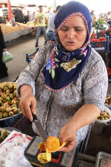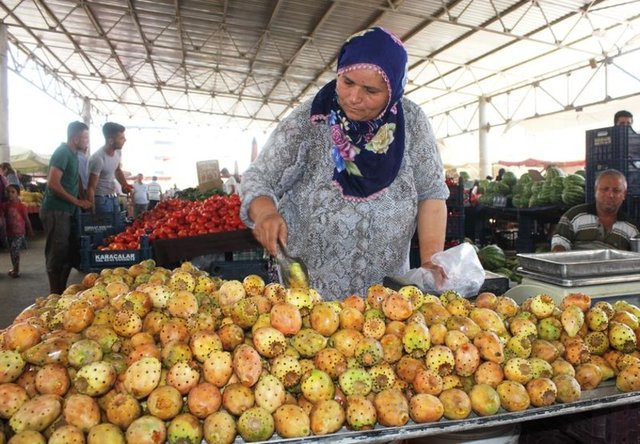 Osmaniye'de dikenli incir toplayıp pazarda satan Zülfinaz Karakoyun, yaptığı açıklamada, dikenli incirin toplanmasının ve kabuğunun soyulmasının zahmetli olduğunu söyledi.