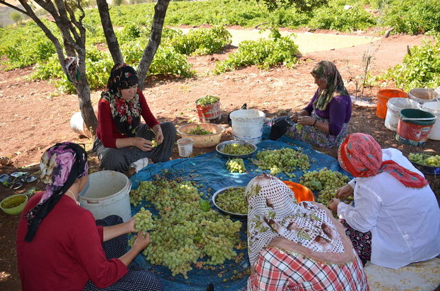 Besni ilçesine bağlı Çorak köyüne sabahın erken saatlerinde üzüm temizlemeye gelen mevsimlik üzüm işçiler, hummalı bir çalışma yaparak üzümün sofralara gelmesine katkıda bulunuyor.