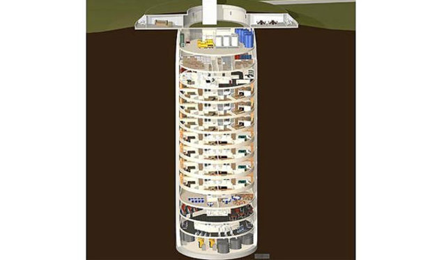 Paranoyak süper zenginler için yer altına inşa edilen bu evlerin nükleer saldırıya karşı dayanıklı olduğu iddia ediliyor. Larry Hall'un Kansas eyaletinde adını açıklamadığı 5 bin nüfuslu bir kasaba yakınlarında yaptığı evler eski füze silolarının içinde yer alıyor.