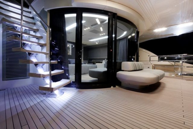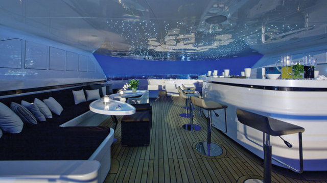Güvertede yer alan şeffaf jakuzi de Arap dünyasının hayal gücünün parayla sınırlı olmadığının ispatı. Ancak bu şaşaaya tezat, diğer işçilik ve malzeme seçimlerinin ehvenişer durumu, bölgesel süperyat markalarının uluslararası alanda boy göstermesine biraz daha zaman olduğunu gösteriyordu.