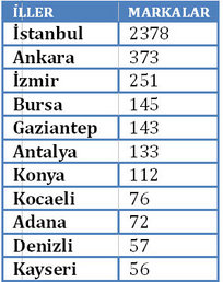 TPE tarafından yayınlanan son marka başvuru bültenine göre; geçtiğimiz dönemde yapılan 4596 marka başvurusunun yüzde 65’i sadece İstanbul, Ankara ve İzmir’den yapıldı.