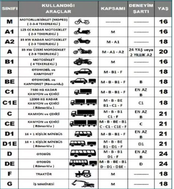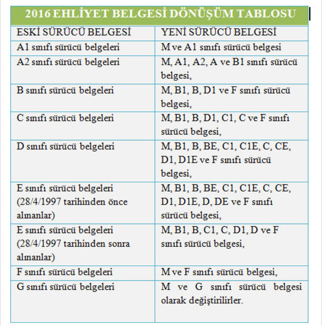 İŞTE YENİLENEN EHLİYET SINIFLARI: